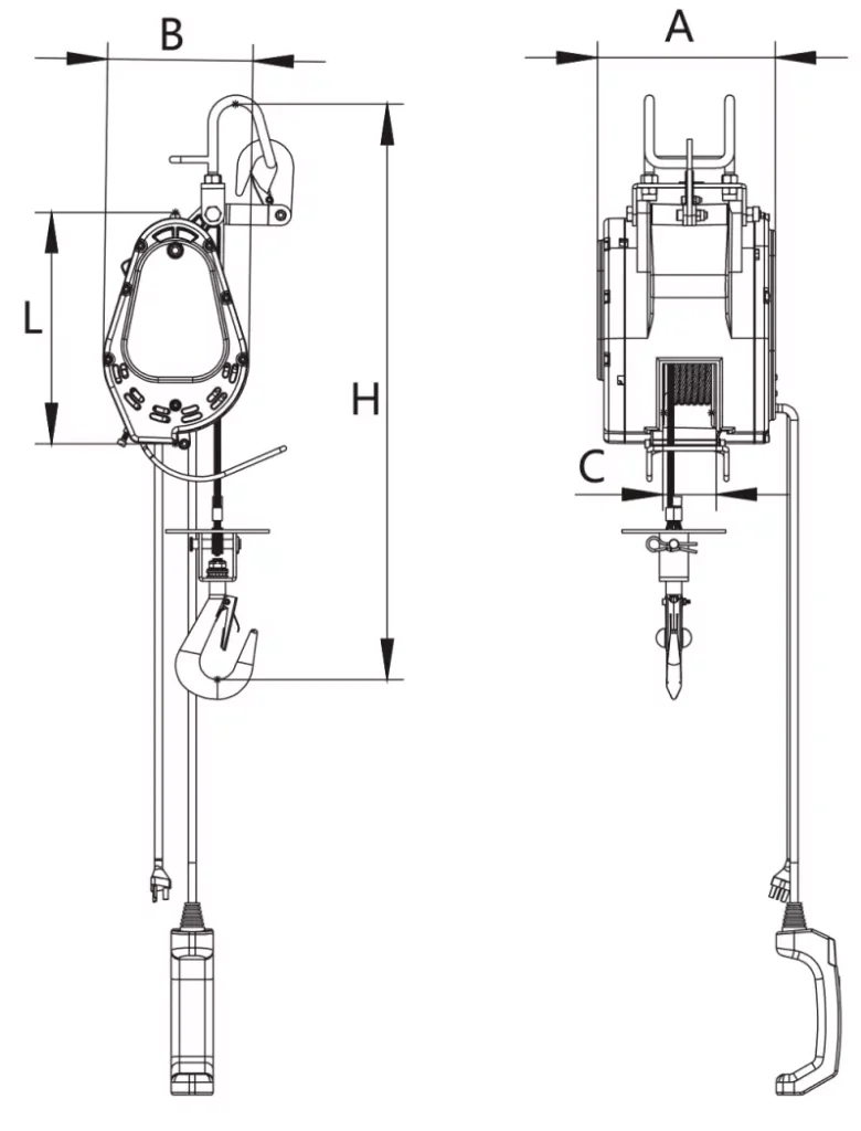 Model | Lifting Capacity(kg) | Permanent magnet inverter motor(Kw) | Lifting speed (m/min) | Power supply | Lifing height(m) | Wire rope (mmxm) | Power cable length(m) | Control handle cable length(m) | N.W(kg) | G.W(kg) | Package size(cm) | |